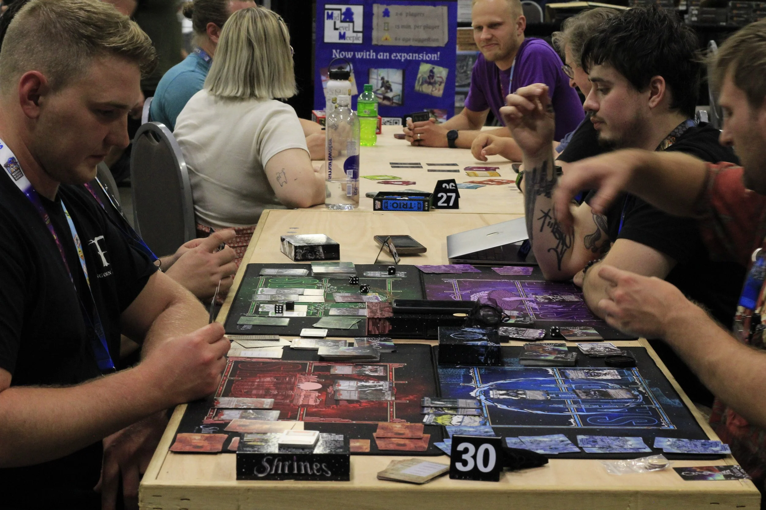 Worshiper Shrines TCG is an independent, strategy-focused tabletop card game that mixes traditional and nontraditional deckbuilding with chess-like movement, and positional decision-making.